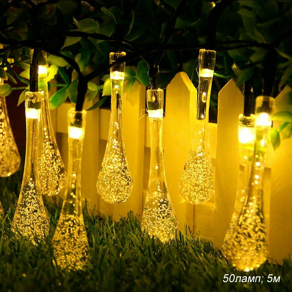 Гирлянда уличная садовая на солнечной батарее "Капельки" 5 метров, 50 ламп интересное: