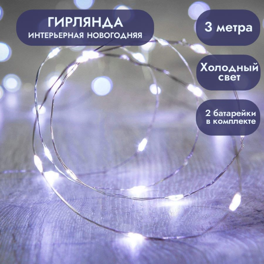 Гирлянда - нить на батарейках 3м белый свет интересное: