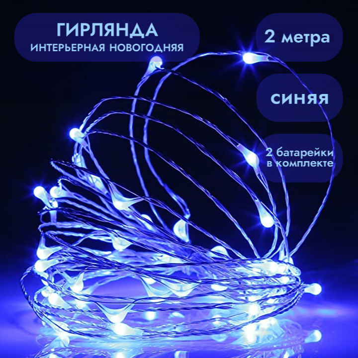 Гирлянда - нить на батарейках 2м синяя интересное: