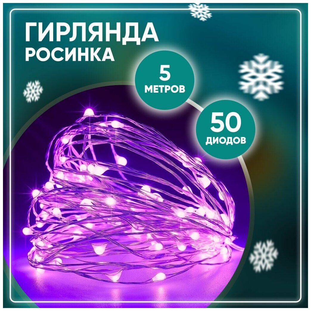 Гирлянда Solmax роса 5м, фиолетовый свет интересное: