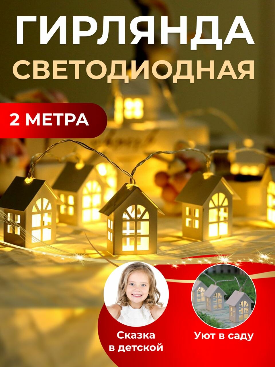 Купить Гирлянда лампочки домики деревянные с USB-питанием