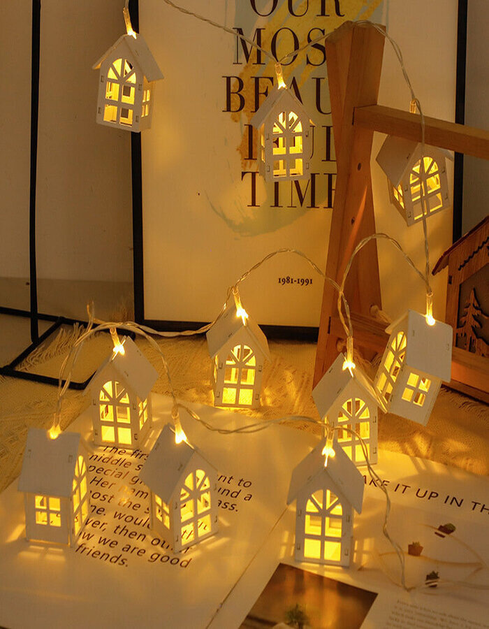 Гирлянда лампочки домики деревянные с USB-питанием интересное: