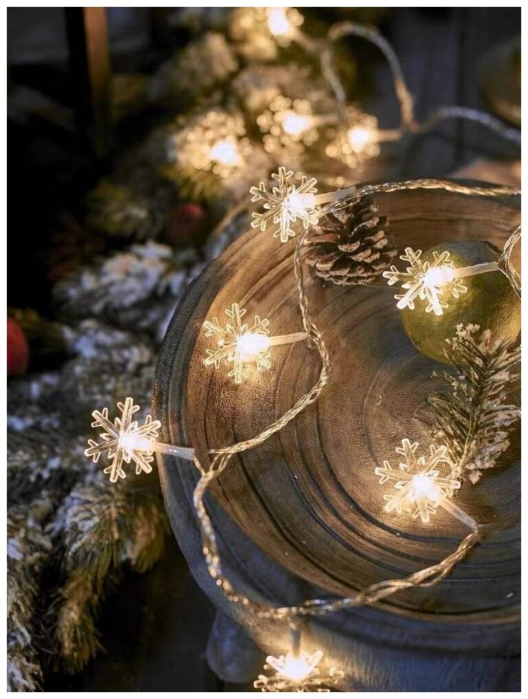 Купить Светодиодная гирлянда 40 ламп 6 метров Теплые Снежинки