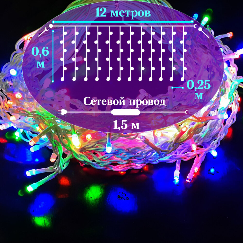 Уличная светодиодная бахрома 12х0,6 метра, цветная интересное: