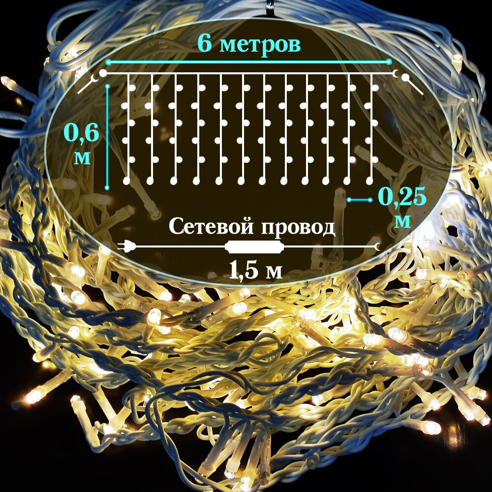 Купить Уличная светодиодная гирлянда "Бахрома 6x0,6 м" от сети, теплый белый