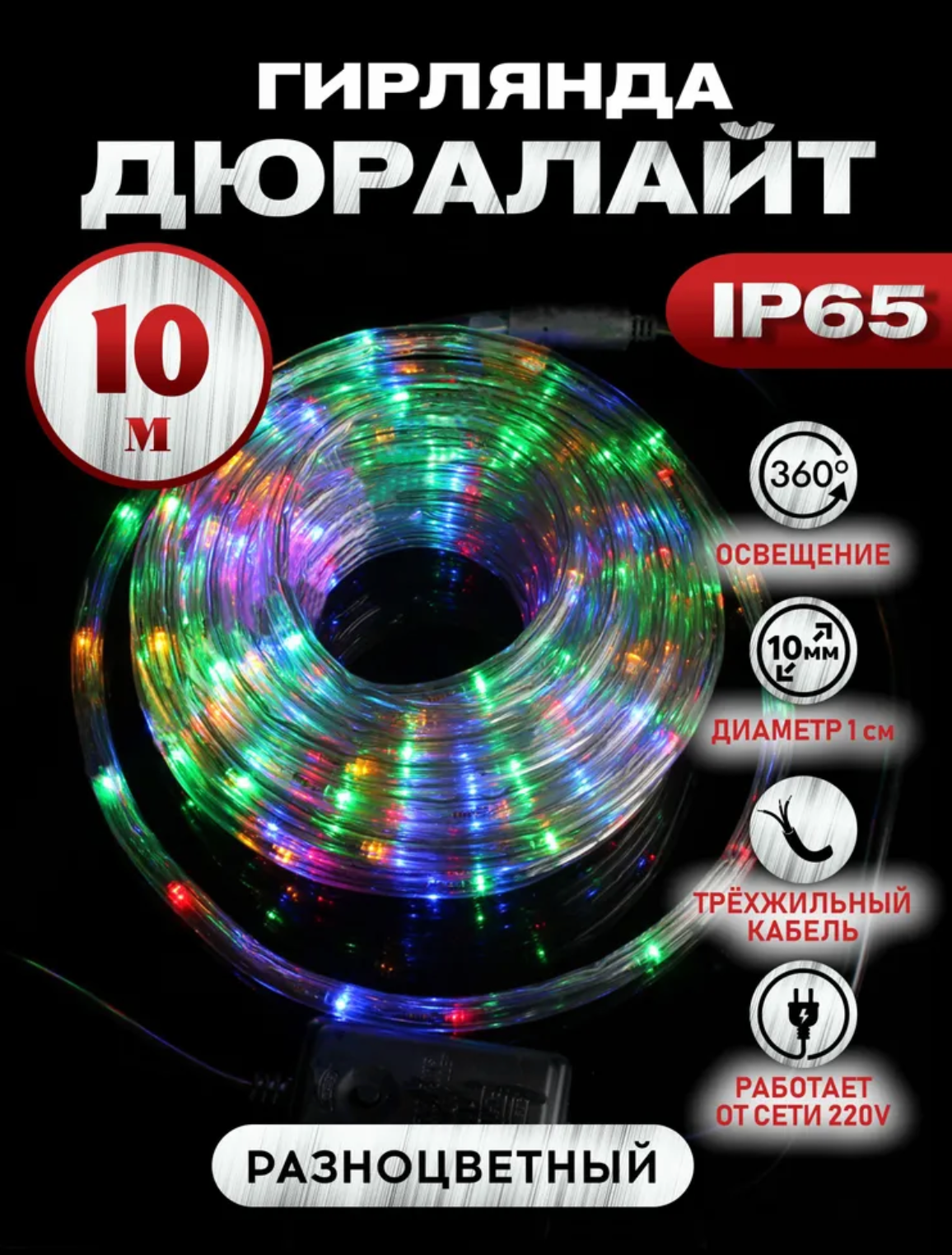 Дюралайт / Светодиодная гирлянда дюралайт , водонепроницаемая, IP67, AB1 10M / Разноцветный интересное: