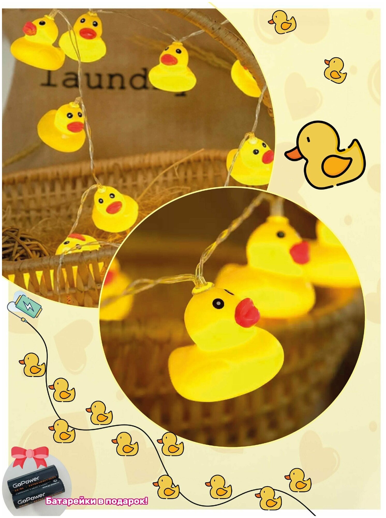 Гирлянда декоративная Утки, гирлянда нить интерьерная, пасхальные утята, 2 батарейки АА в подарок интересное: