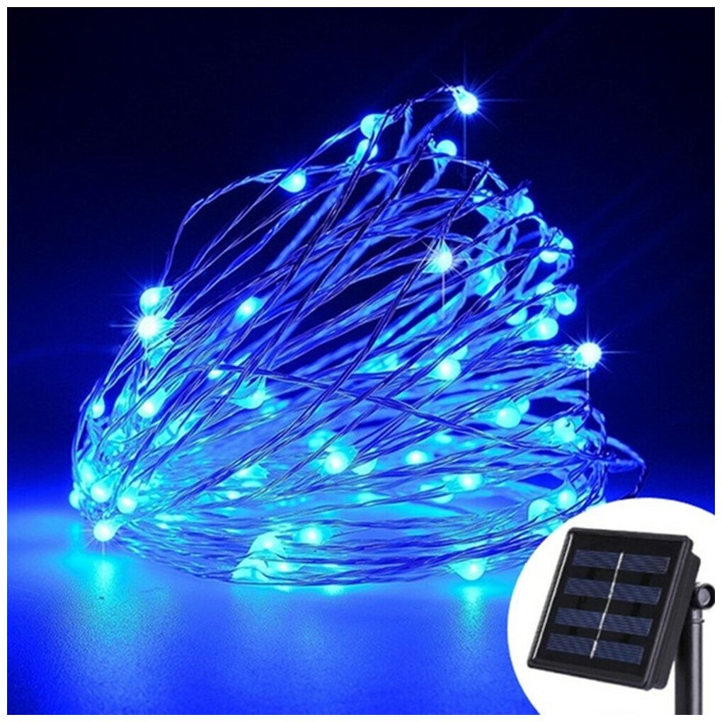 Светодиодная гирлянда нить Синий на солнечной батареи 100 ламп 10 метров 8 режимов