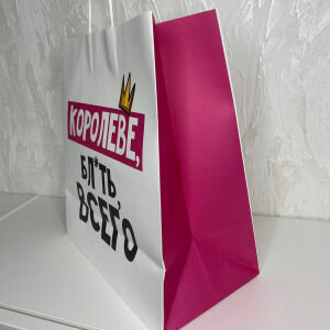 Пакет подарочный с надписью "Королеве" большой крафтовый для неё, подруге, любимой, жене, сестре, для упаковки подарка 28х35х15 см.