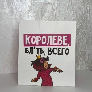 Пакет подарочный "Королеве" 22х22х11 см. крафтовый с приколом для жены, подруги, любимой