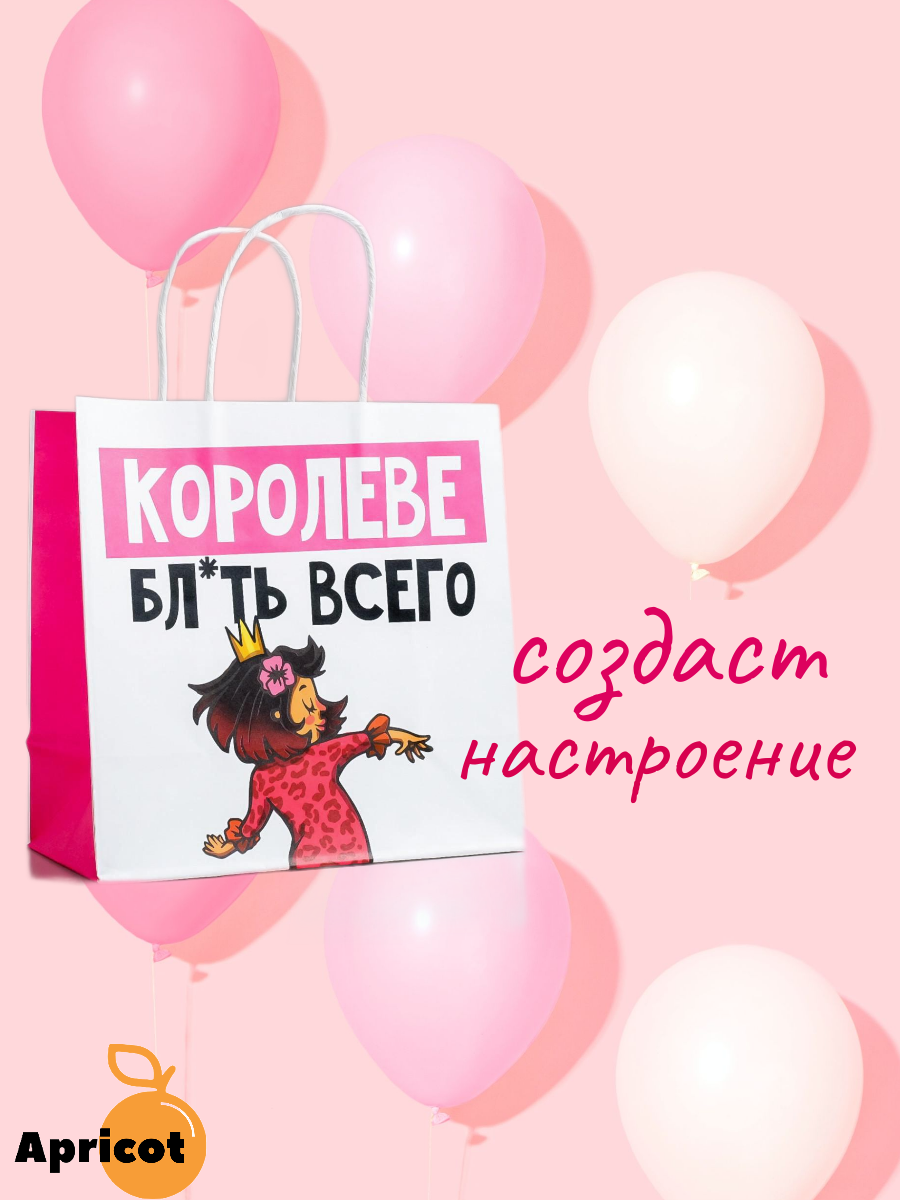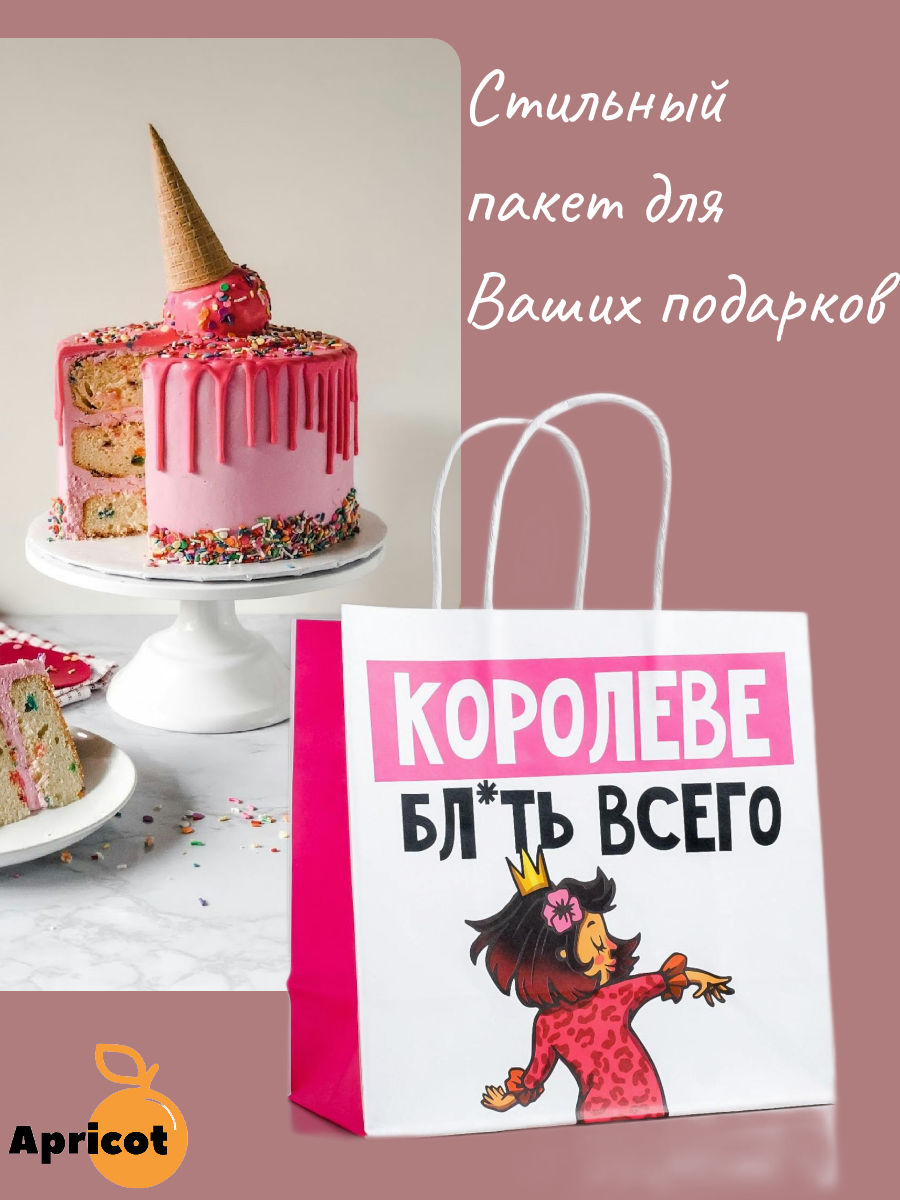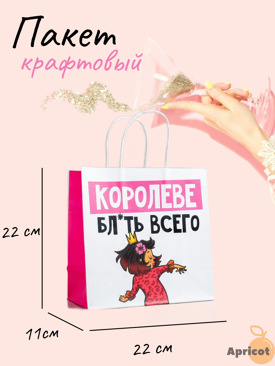 Купить Пакет подарочный "Королеве" 22х22х11 см. крафтовый с приколом для жены, подруги, любимой