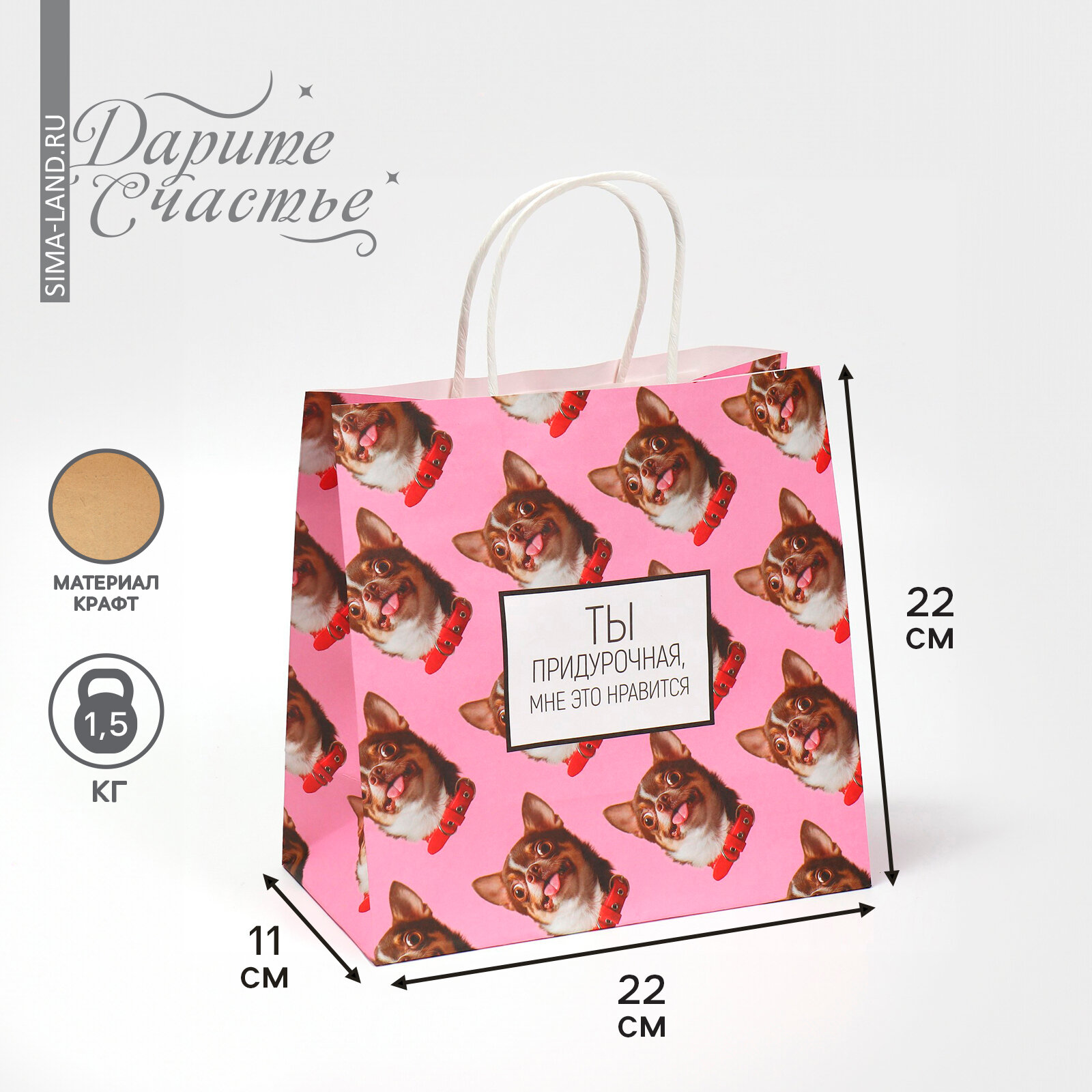 Пакет подарочный «Ты придурочная, мне это нравится», 22 х 22 х 11 см интересное: