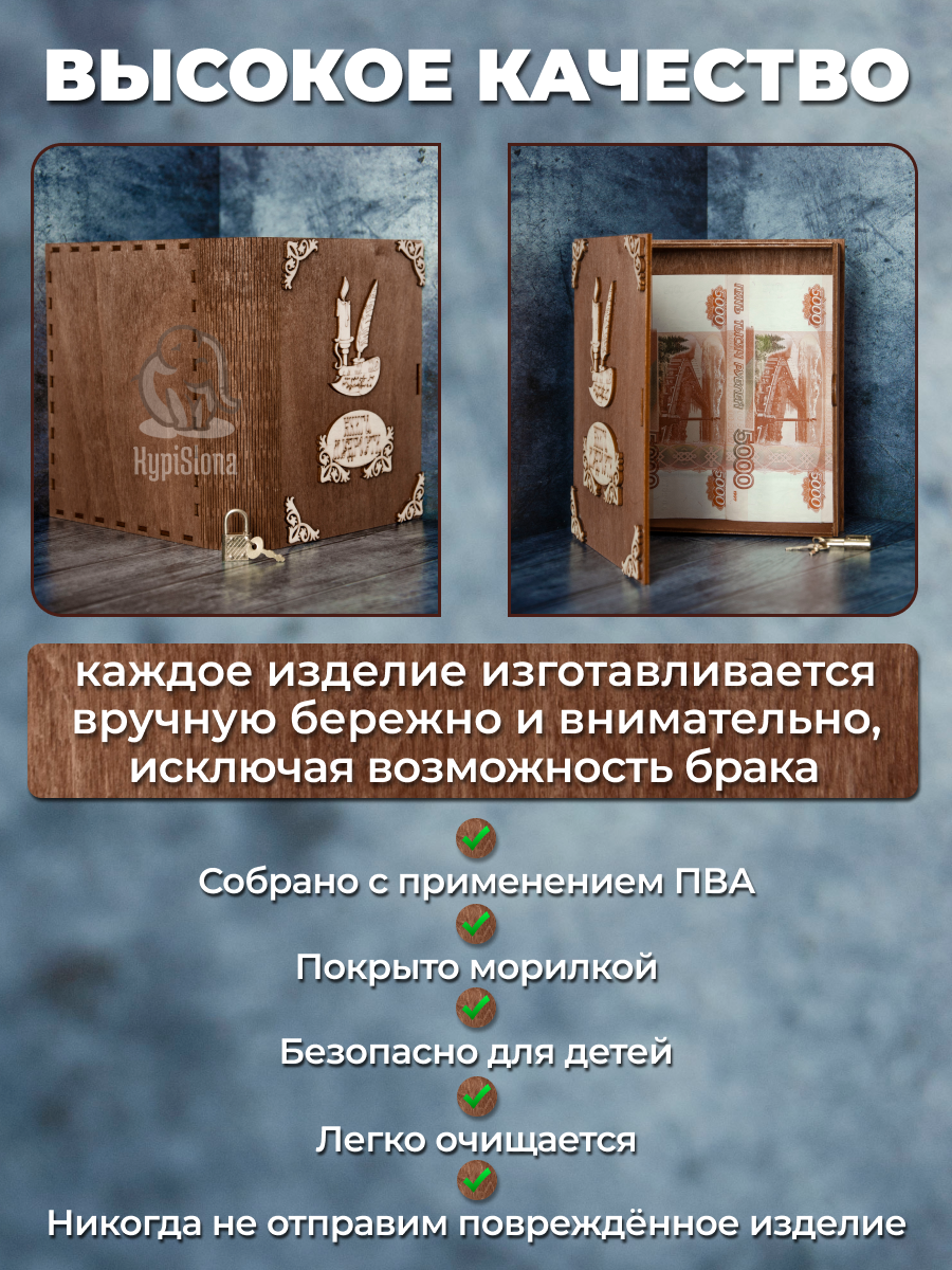 Копилка деревянная "Книга мудрости" в форме книги интересное: