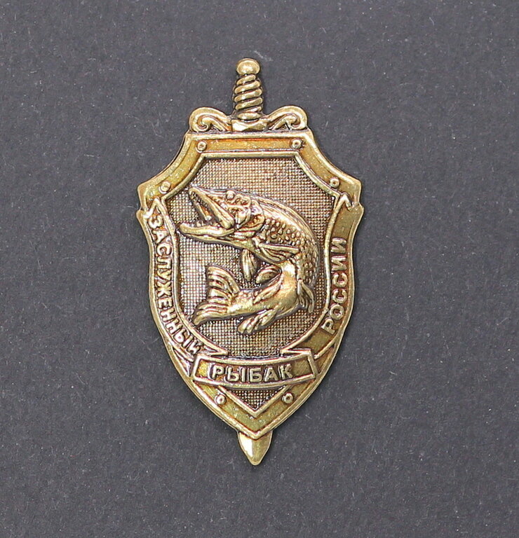 Значок "Заслуженный рыбак России", бронза интересное: