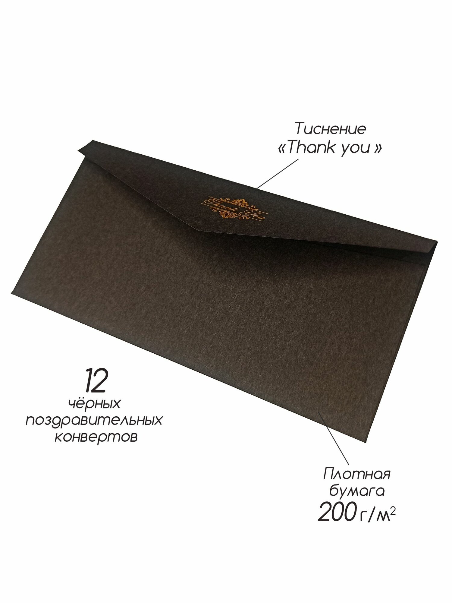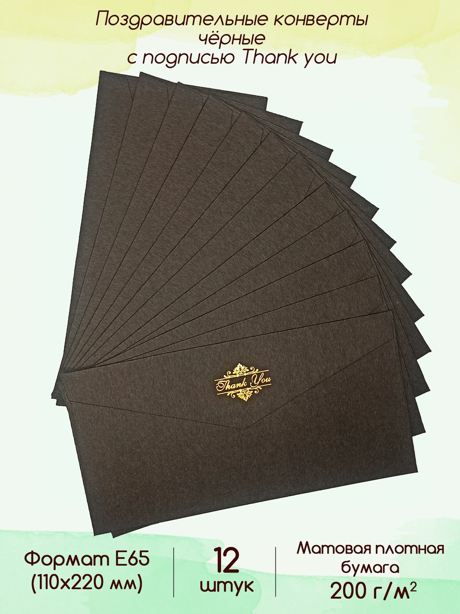 Конверт чёрный подарочный для денег E65 с подписью Thank you 12 штук интересное: