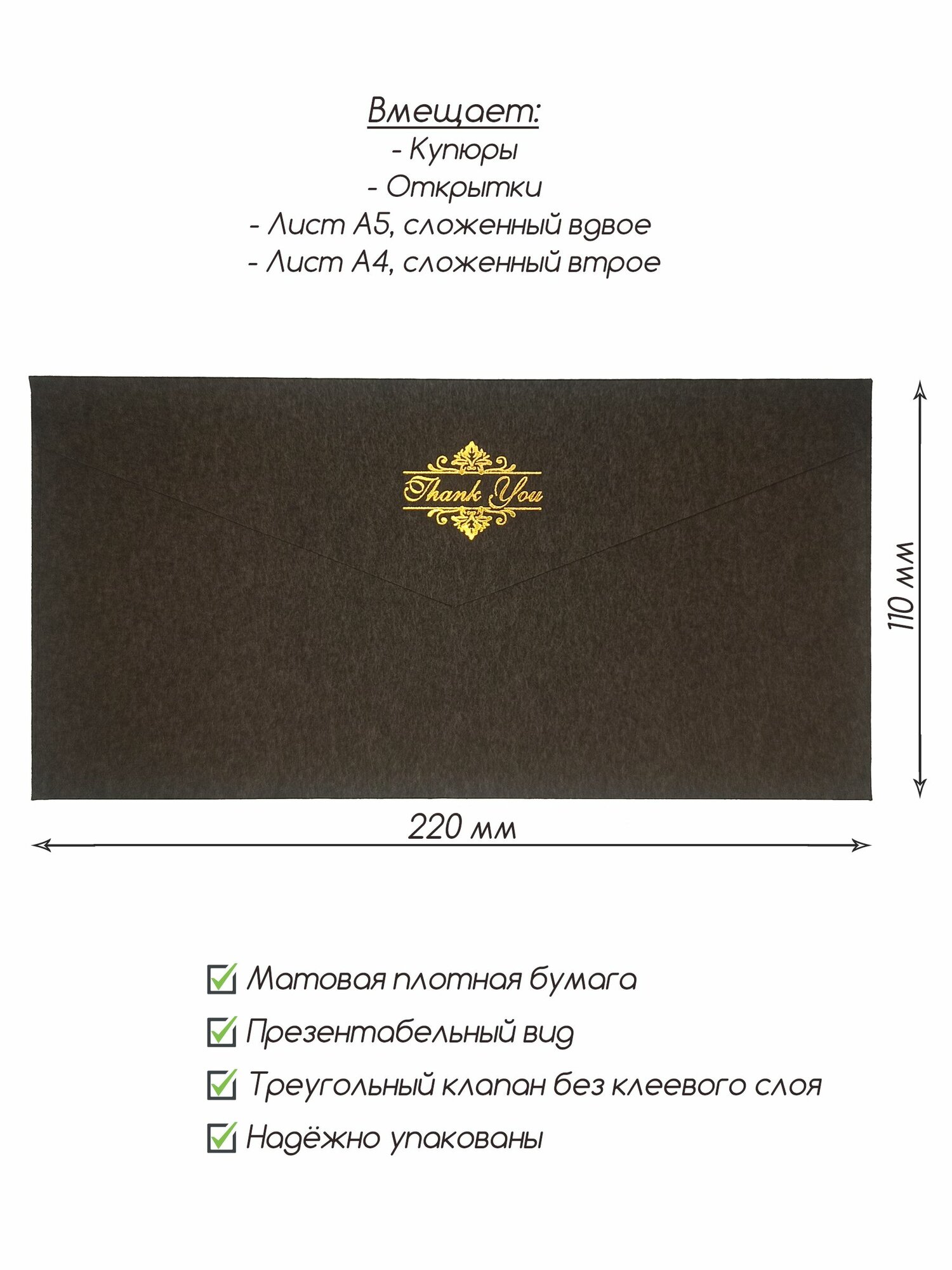 | Формат конверта | DL/E65 (110 x 220 мм) |