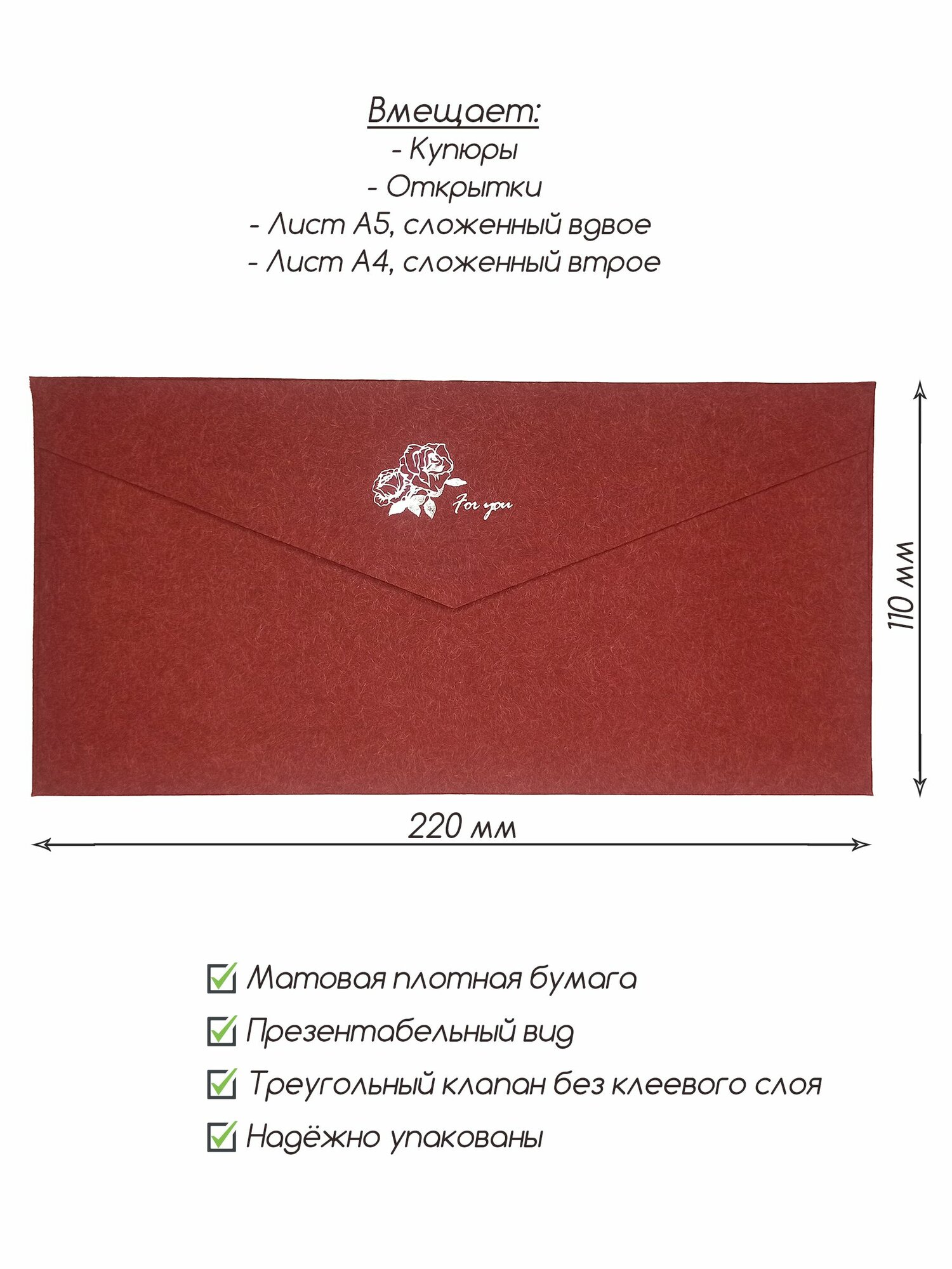 | Формат конверта | DL/E65 (110 x 220 мм) |