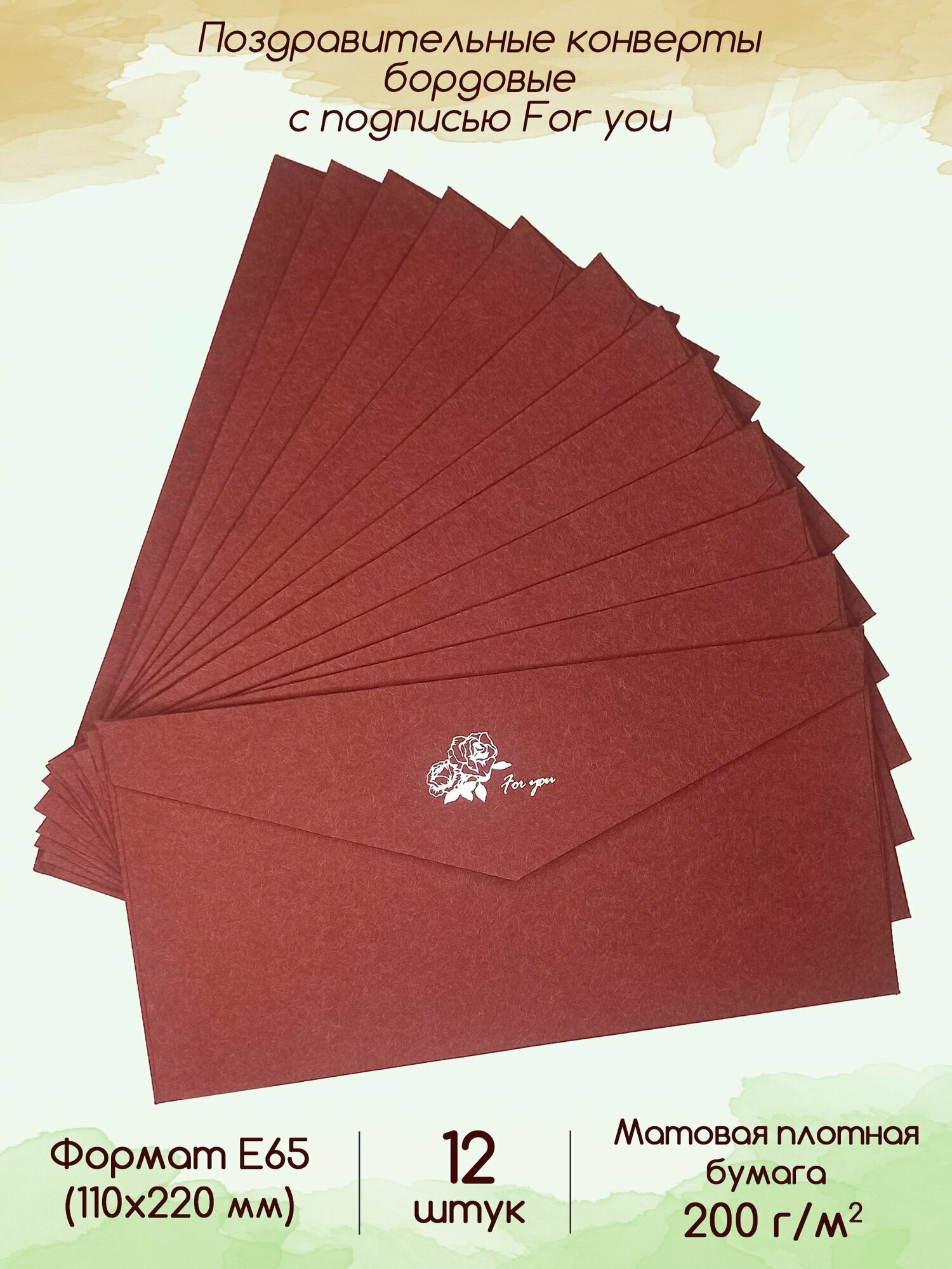 Конверты для денег подарочные бордовые 110х220мм с розой 12 штук интересное: