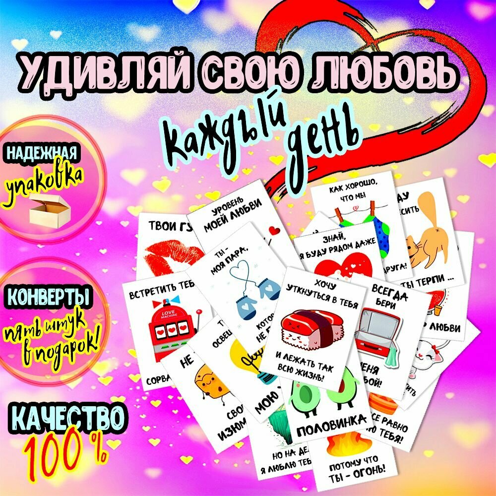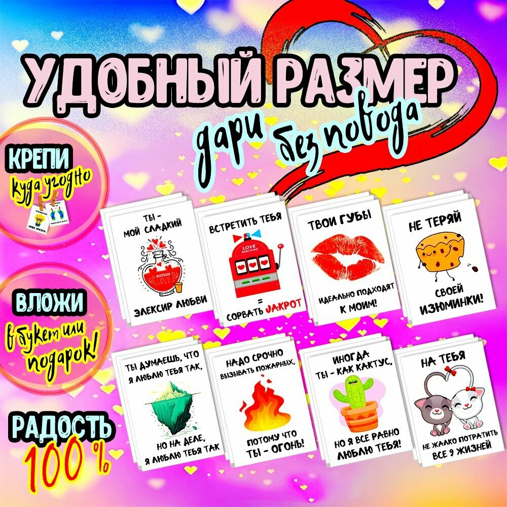 Мини открытки любимому и любимой с прикольными фразами набор 32 штуки интересное: