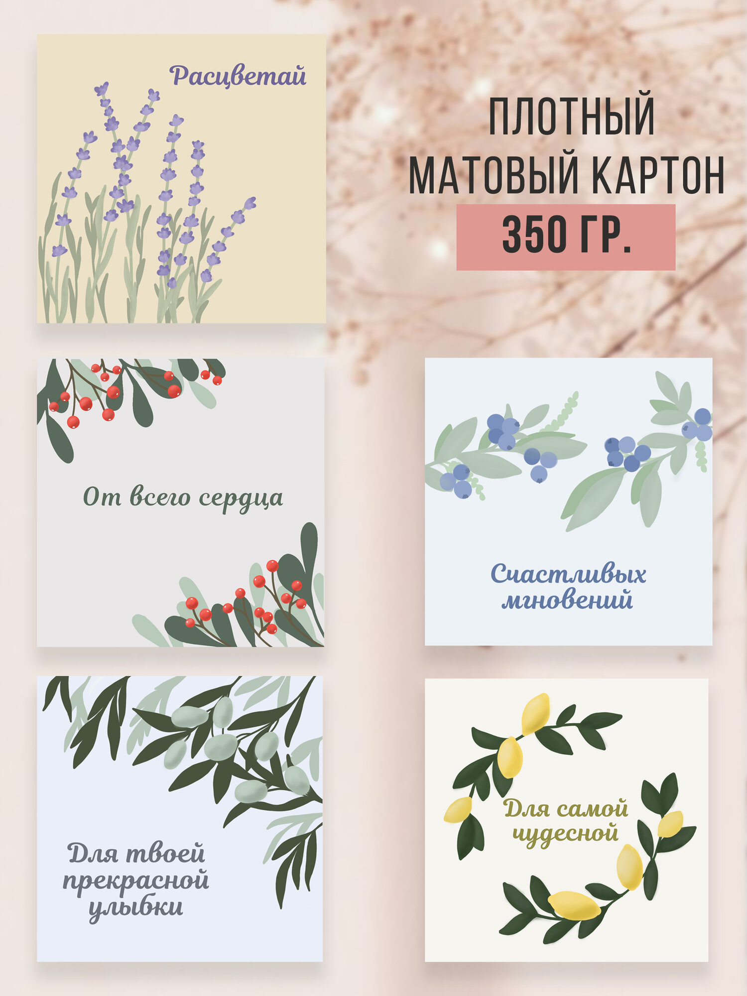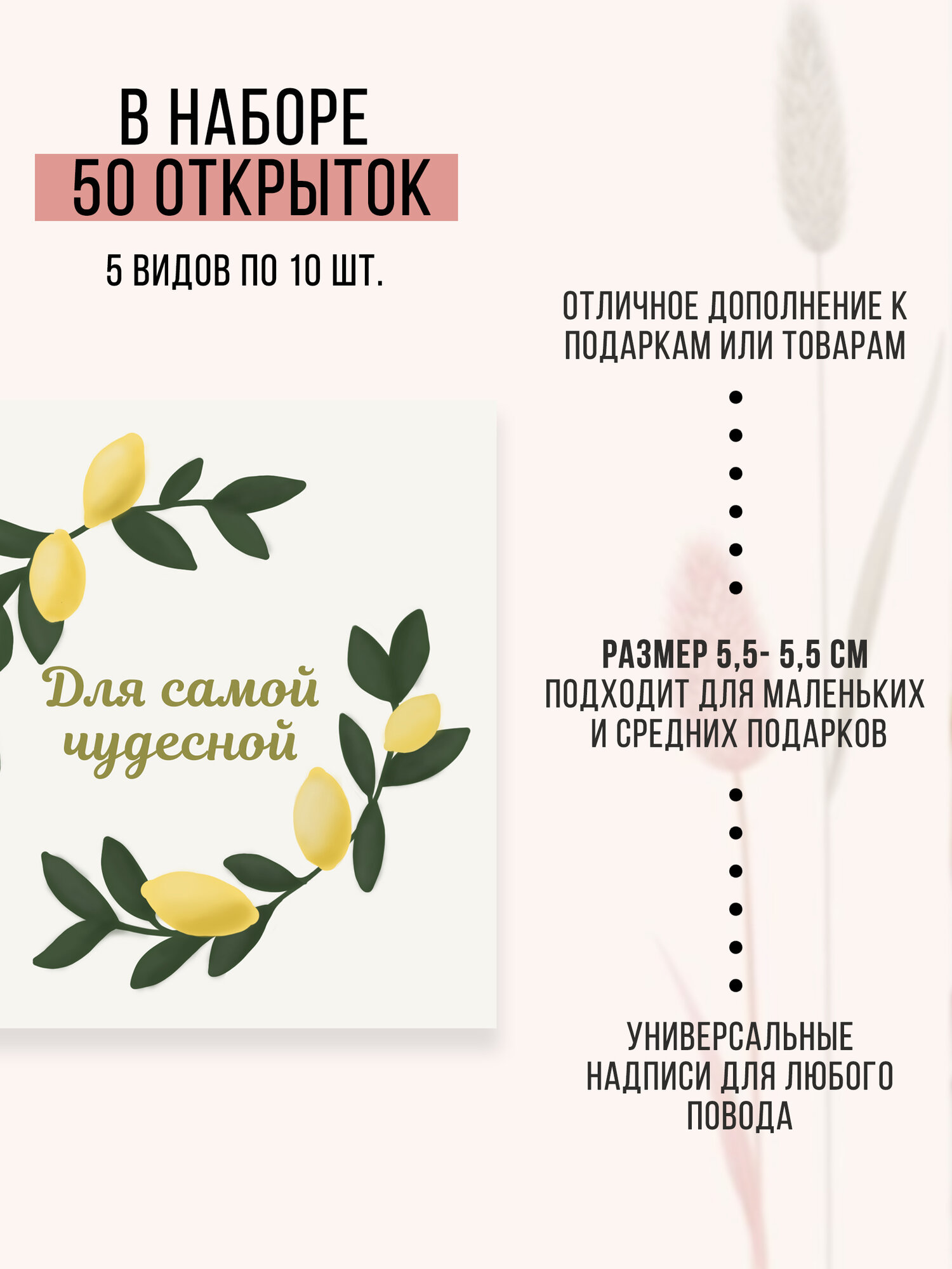 | Подробная комплектация | Универсальные открытки 50 шт., (5 видов по 10 шт.) + подарок |
