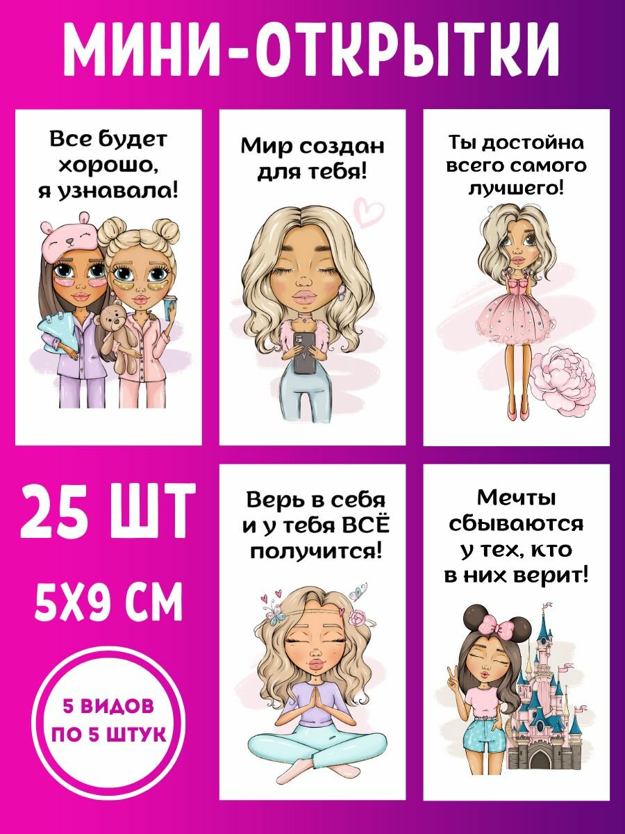 Купить Мини-открытки мотивационные с пожеланиями набор 25 шт