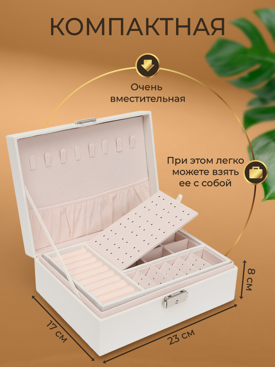 Шкатулка для украшений WELHOME большая шкатулка с замком, белая интересное: