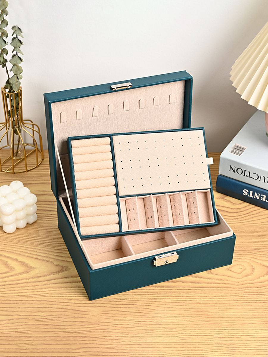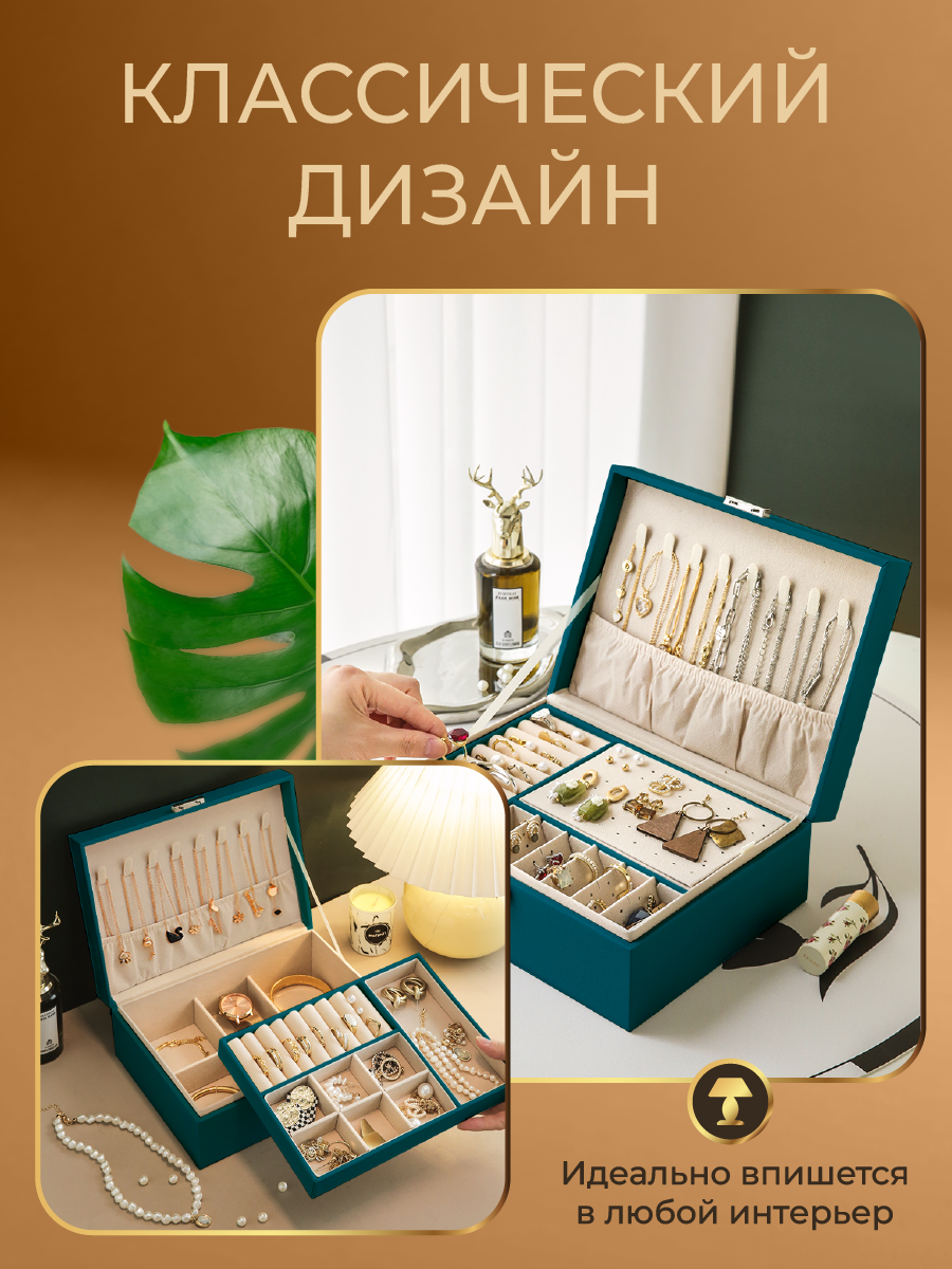 Шкатулка для украшений WELHOME большая шкатулка с замком, изумрудная