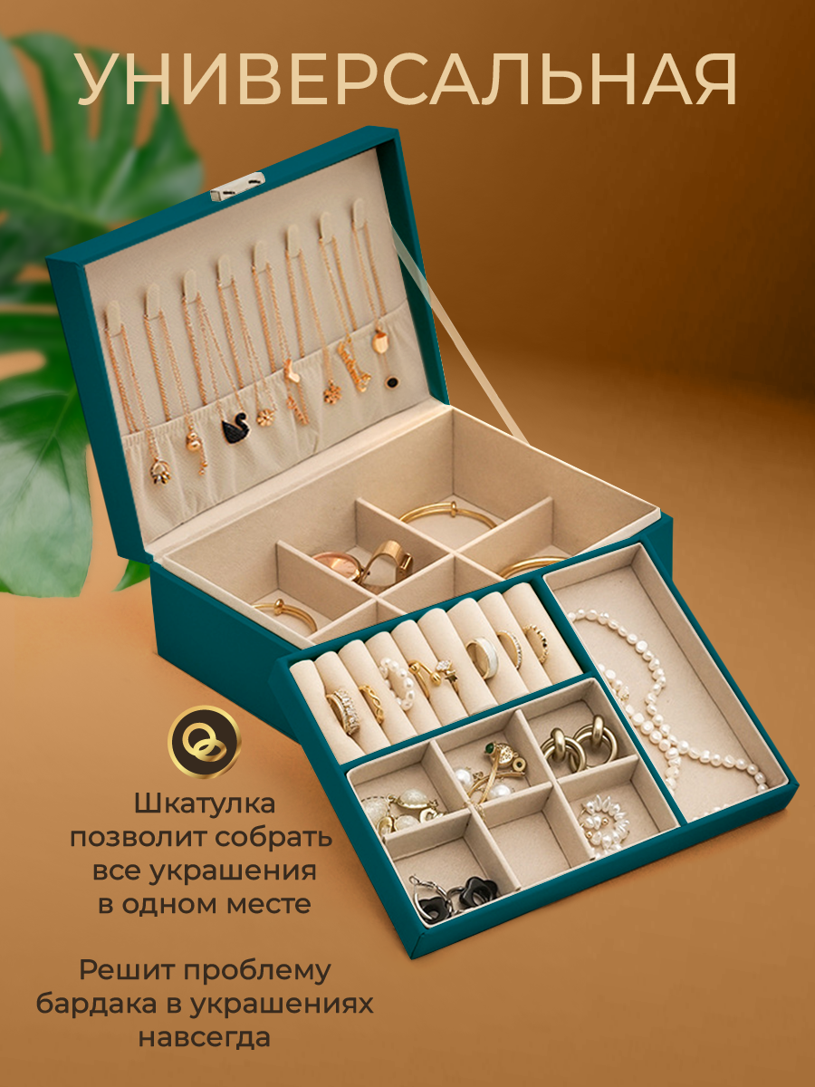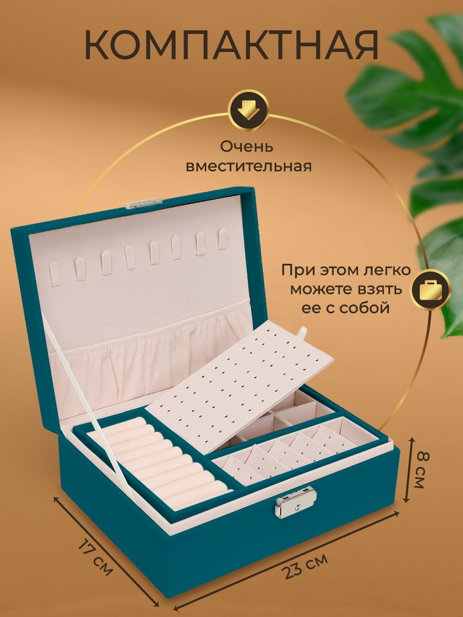 Шкатулка для украшений WELHOME большая шкатулка с замком, бирюзовая интересное: