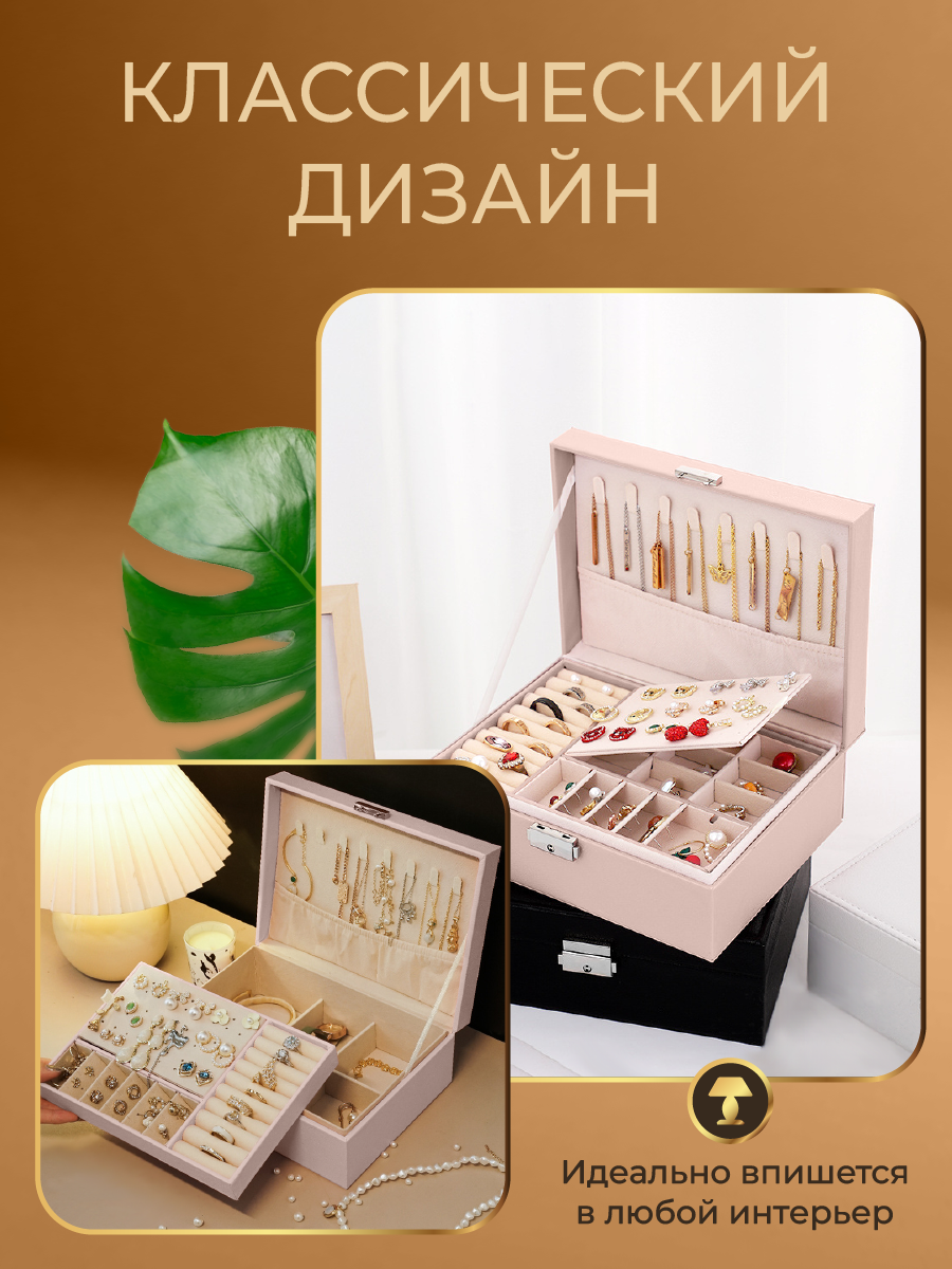 Шкатулка для украшений WELHOME большая шкатулка с замком, пудровая интересное: