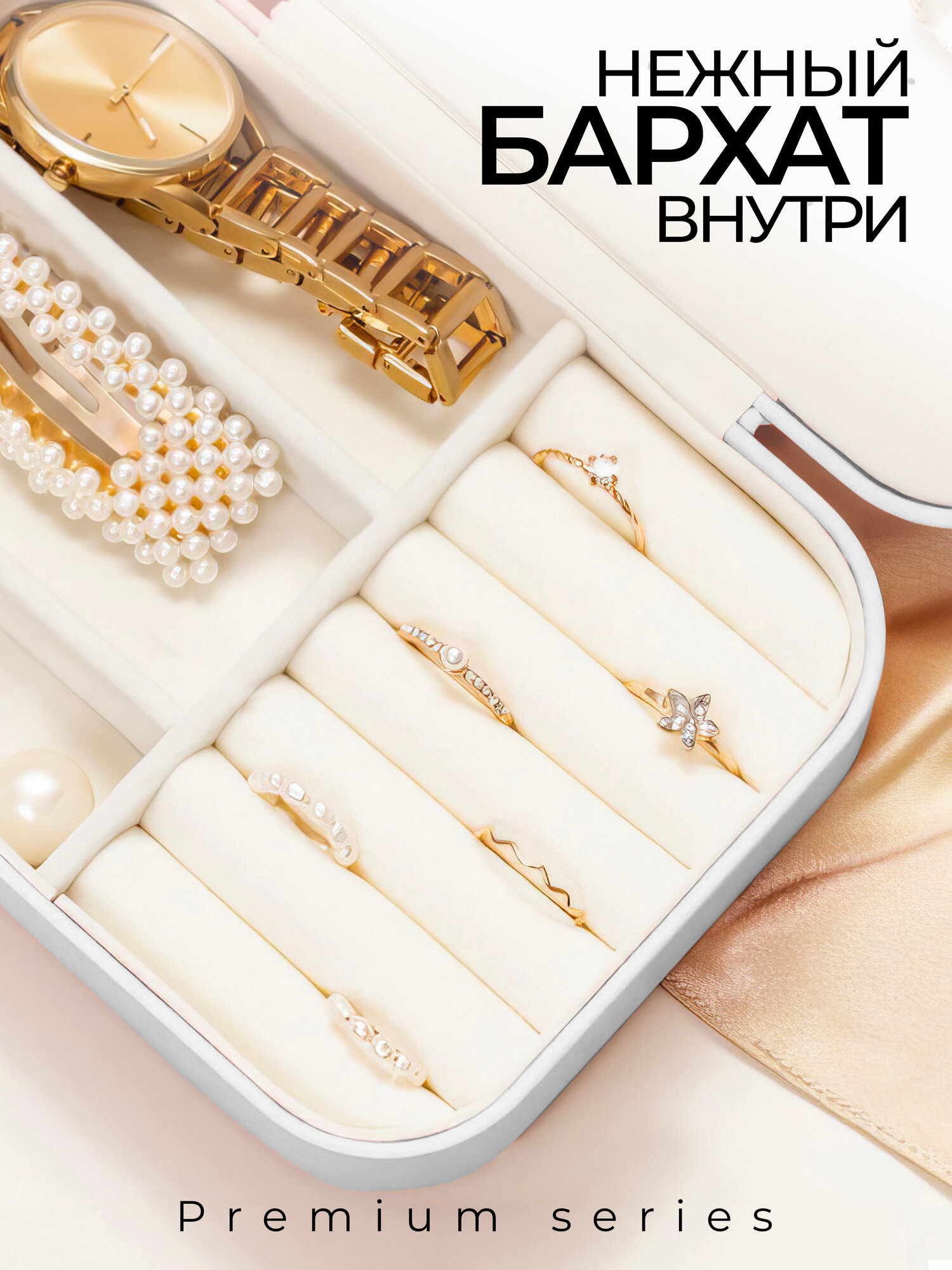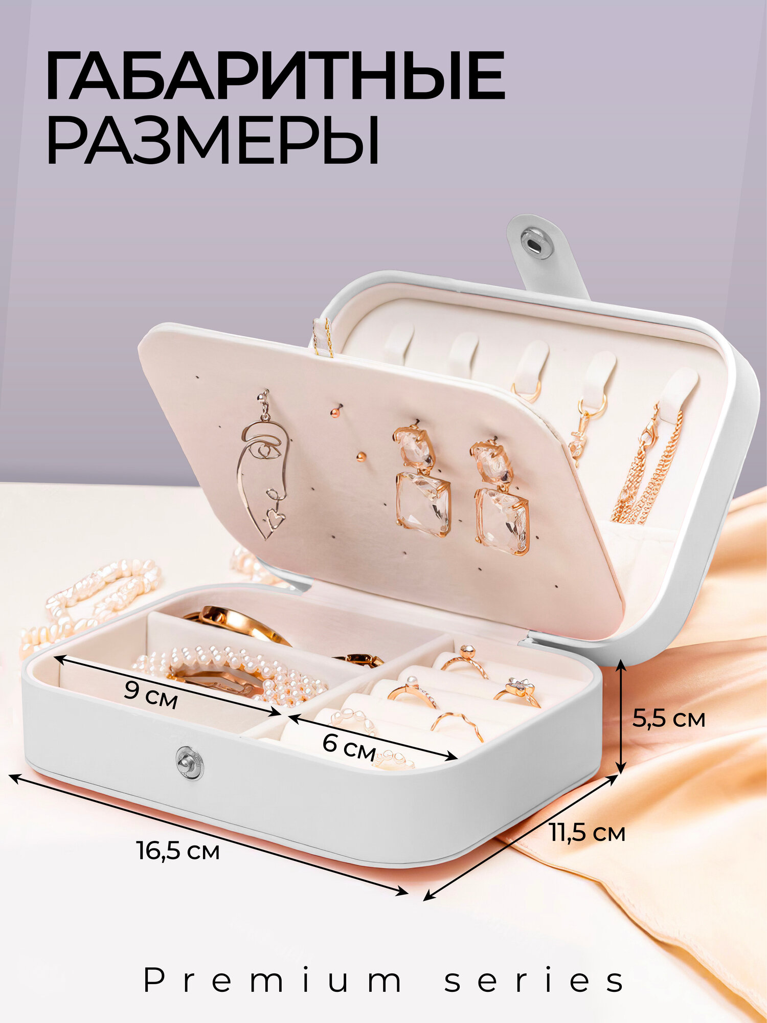 Шкатулка-органайзер для хранения украшений, драгоценностей, бижутерии, колец и сережек, белая интересное: