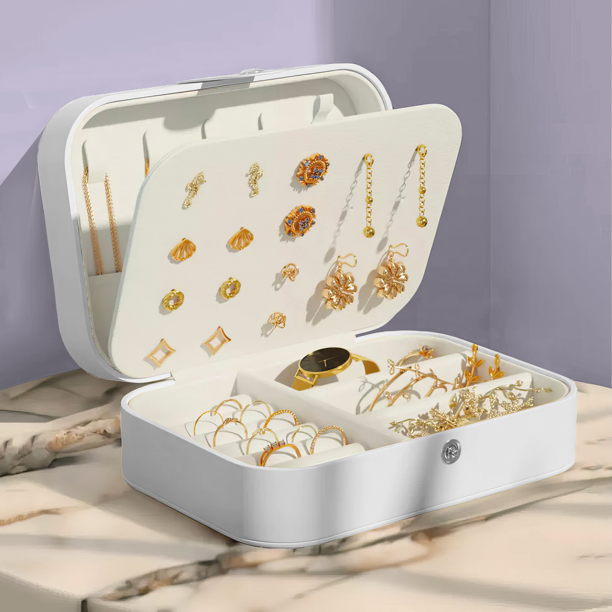 Купить Шкатулка-органайзер для хранения украшений, драгоценностей, бижутерии, колец и сережек, белая