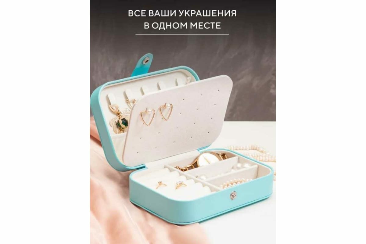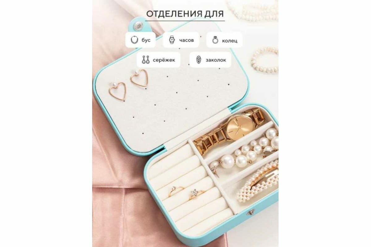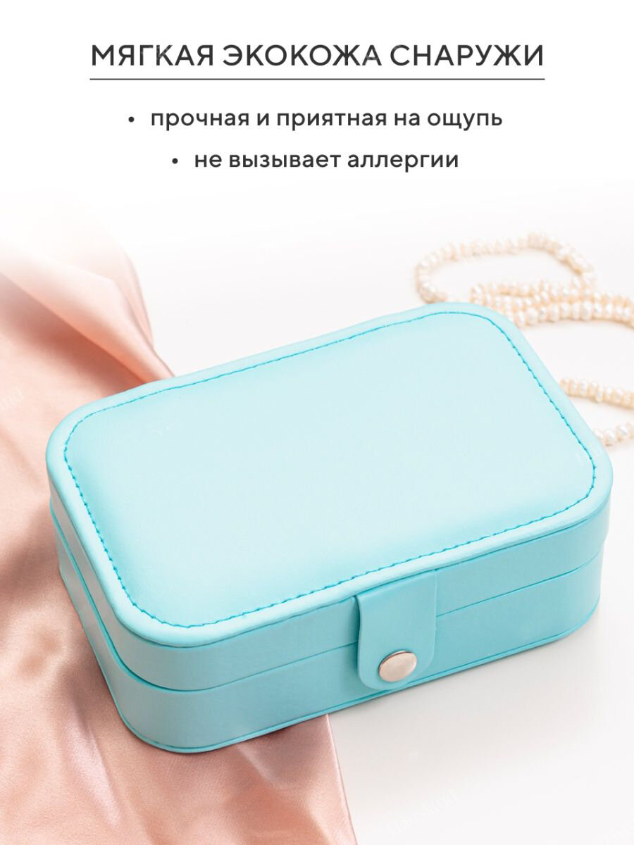 Шкатулка-органайзер для хранения украшений, драгоценностей, бижутерии, 165х115х55 мм, голубая интересное: