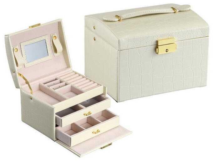 Шкатулка-сундучок Агата с зеркалом и замком, бежевого цвета, искусственная кожа интересное: