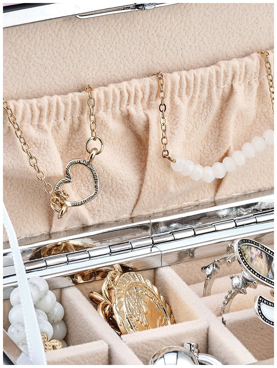 Шкатулка для хранения украшений дорожная маленькая / Органайзер для девочки / Коробочка для бижутерии Lyambda white