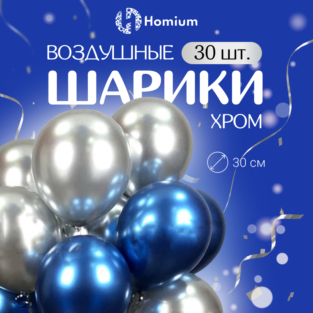 Купить Шарики воздушные хром на день рождения для мальчика, украшение для фотозоны, 30 шт (синий и серебро)