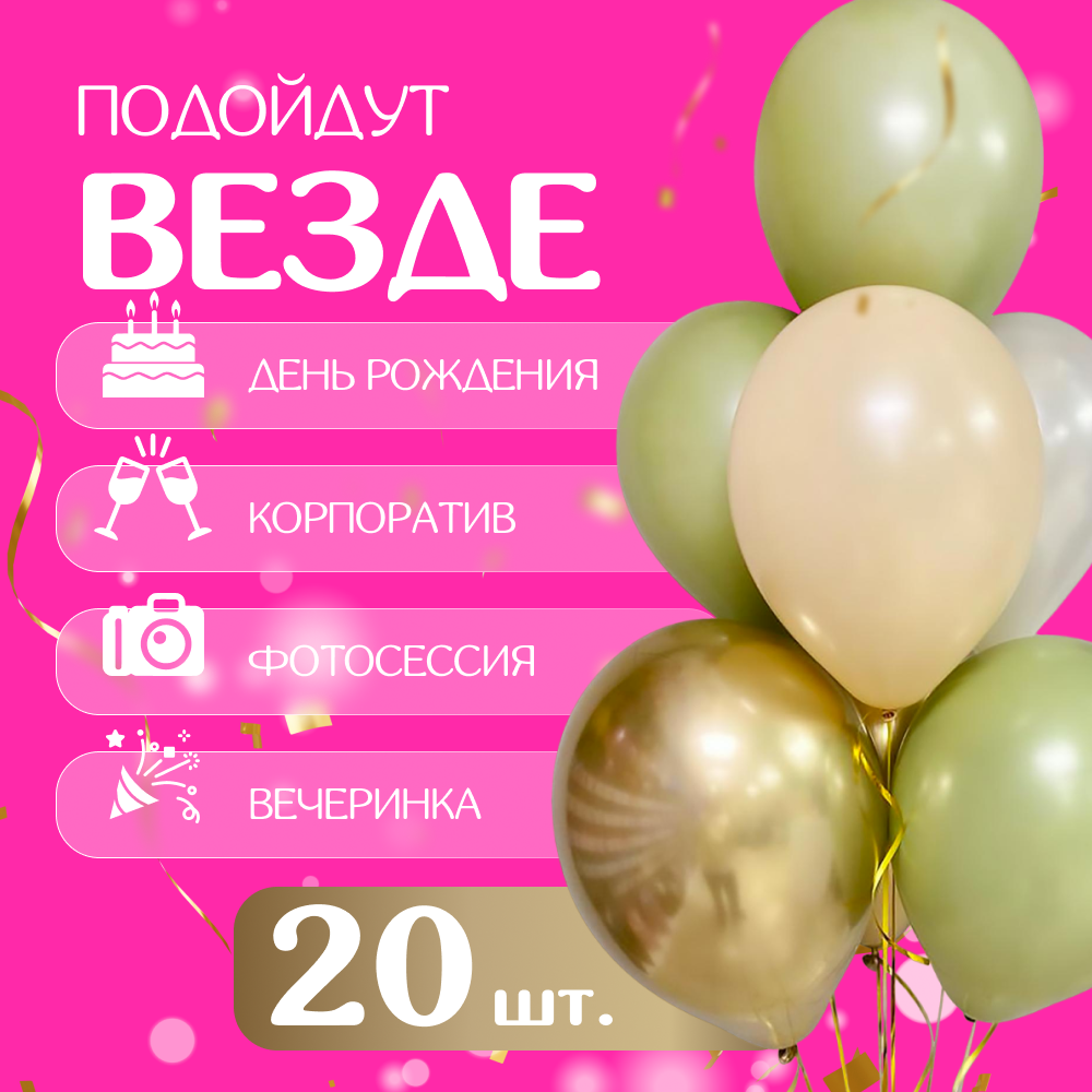 Купить Шары воздушные для фотосессии, украшение для праздника на день рождения, подарок на 8 марта и 14 февраля, 20 шт (бежевый и салатовый)