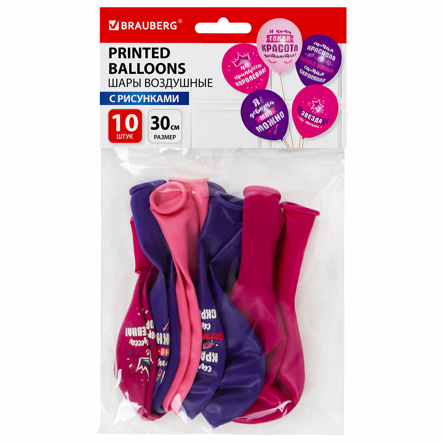 Шарики воздушные с днем рождения женщине набор 10 штук, шары для фотозоны 30 см с приколами, ассорти, Brauberg, 591892 интересное: