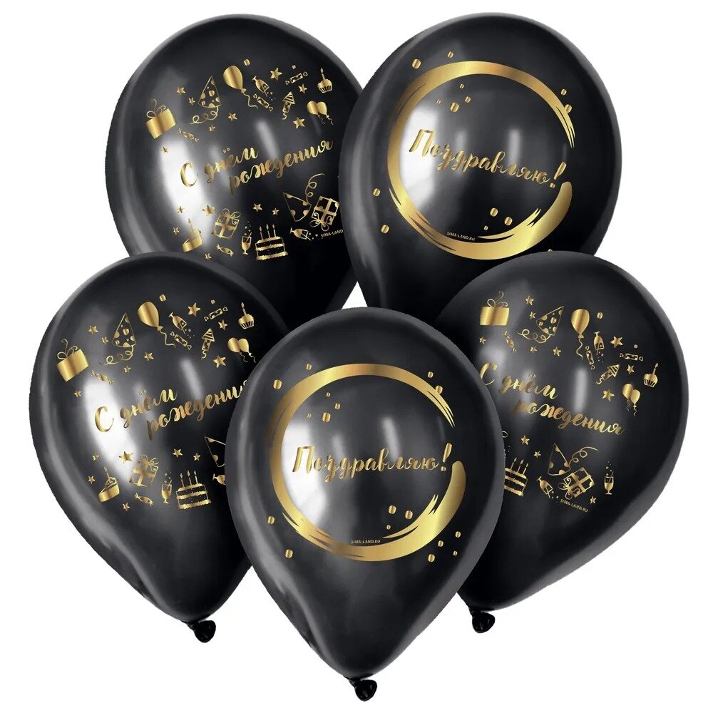 Купить Шар латексный 12" "С Днем Рождения", стильный праздник, 5 шт.