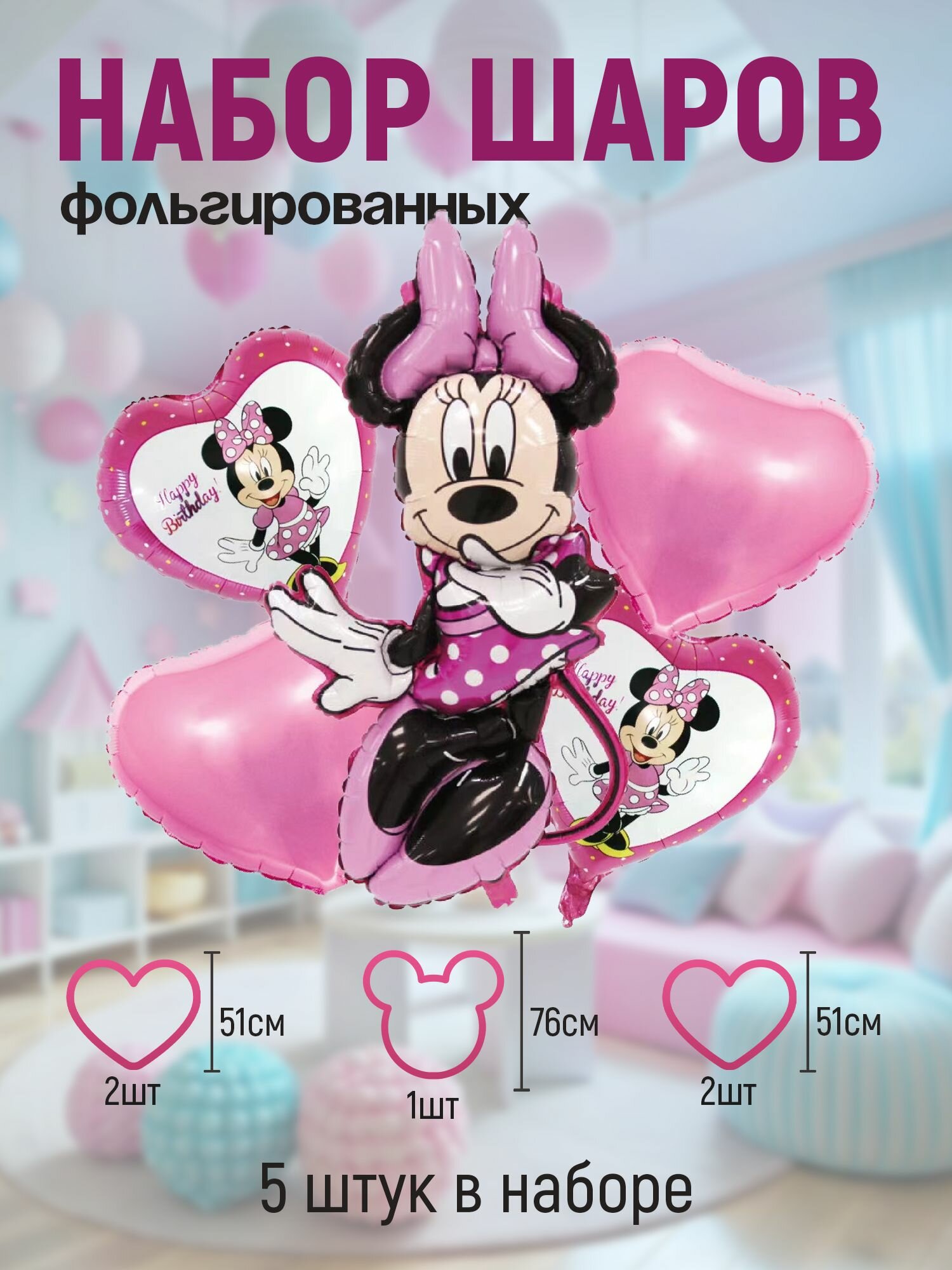 Купить Набор воздушных шаров фольгированных 5 штук "Минни-Маус сердца"