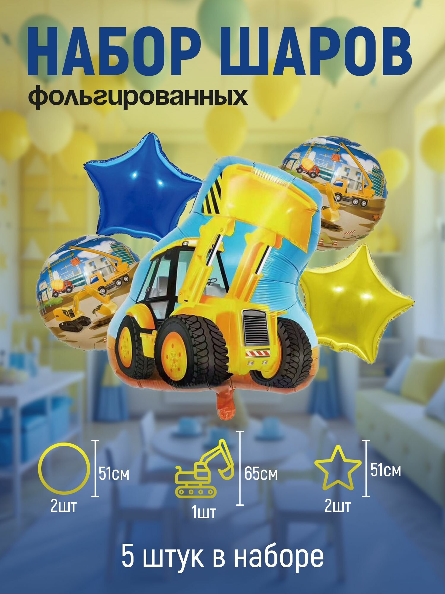 Купить Набор воздушных шаров фольгированных 5 штук "Экскаватор", мальчику на день рождение