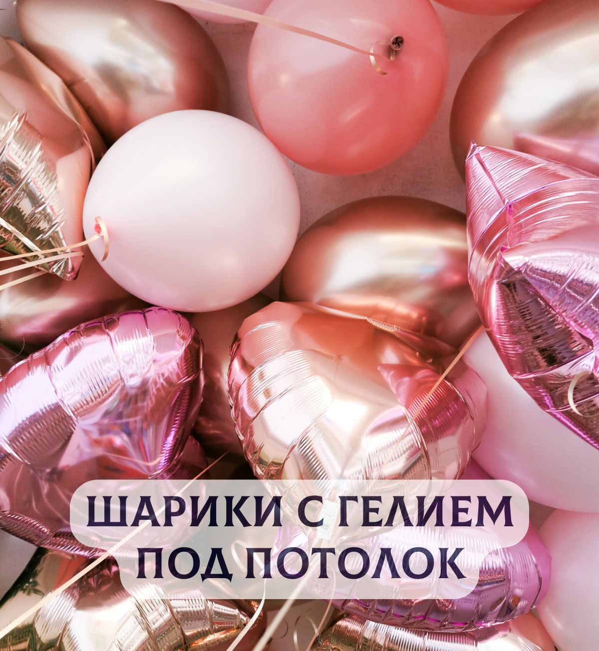 Купить Воздушные шары с гелием под потолок "Розовое золото" 10 шт.