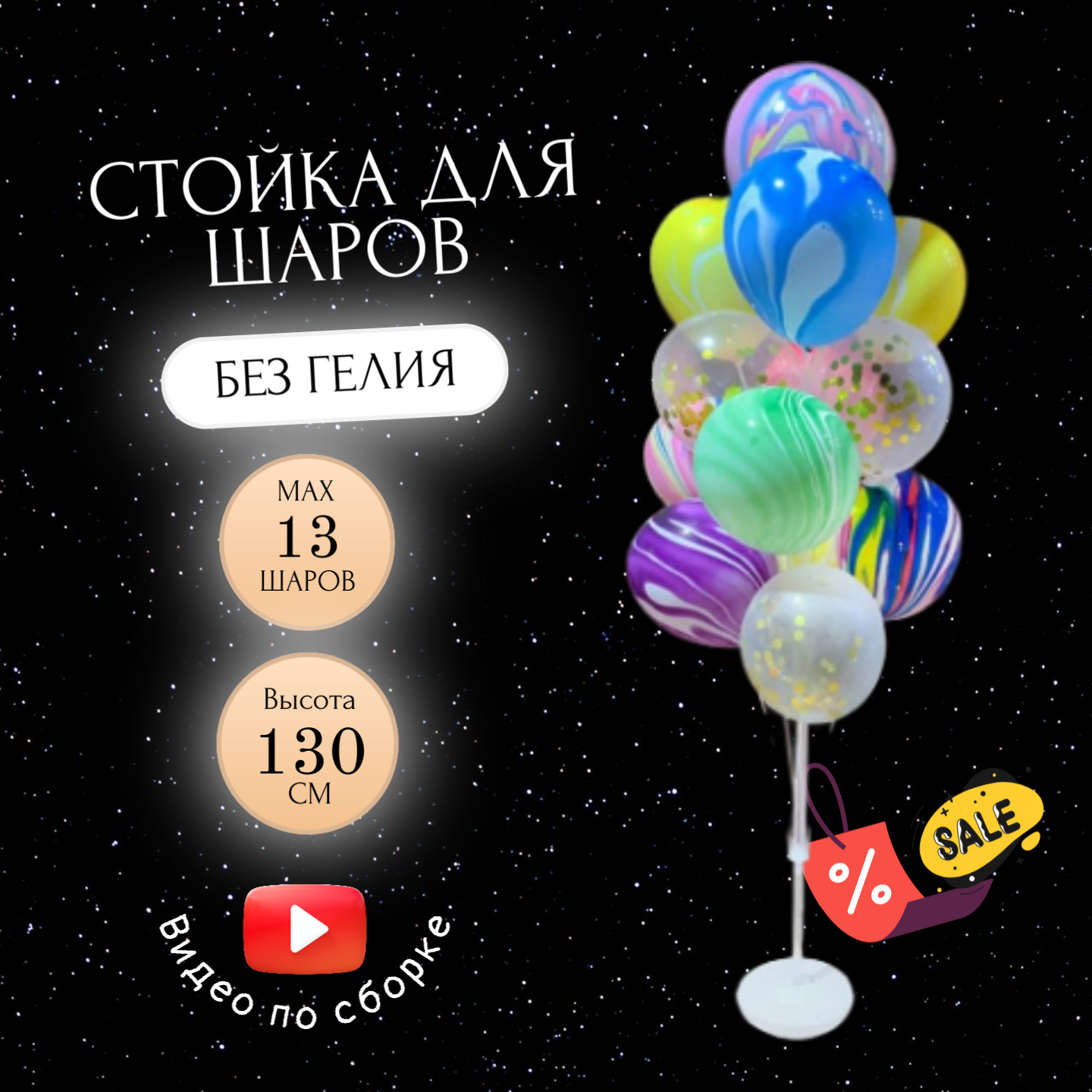 Подставка для воздушных шаров. Высота 130 см, 13 шаров интересное: