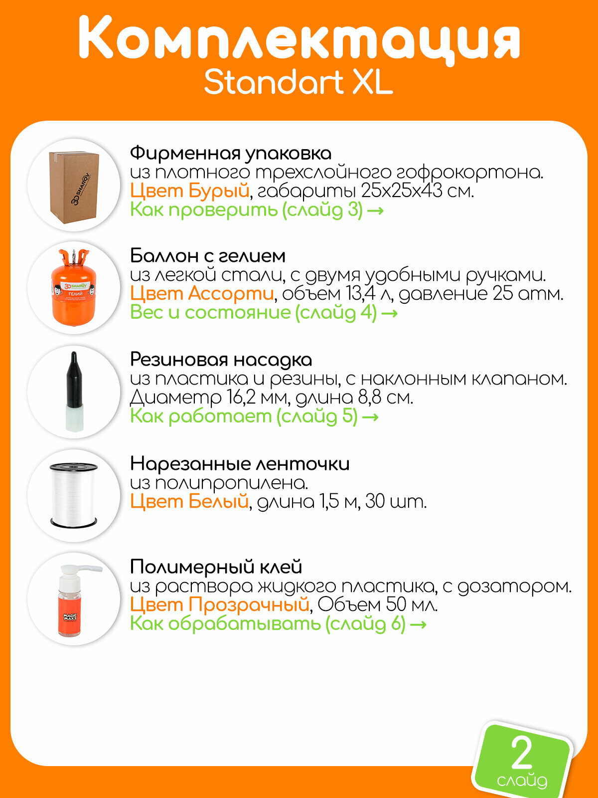 | Подробная комплектация | Баллон с гелием (комплектация согласно фотографии) |