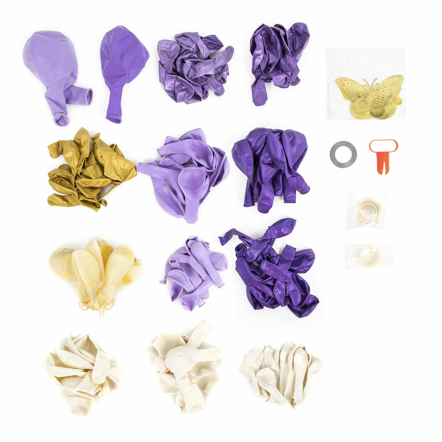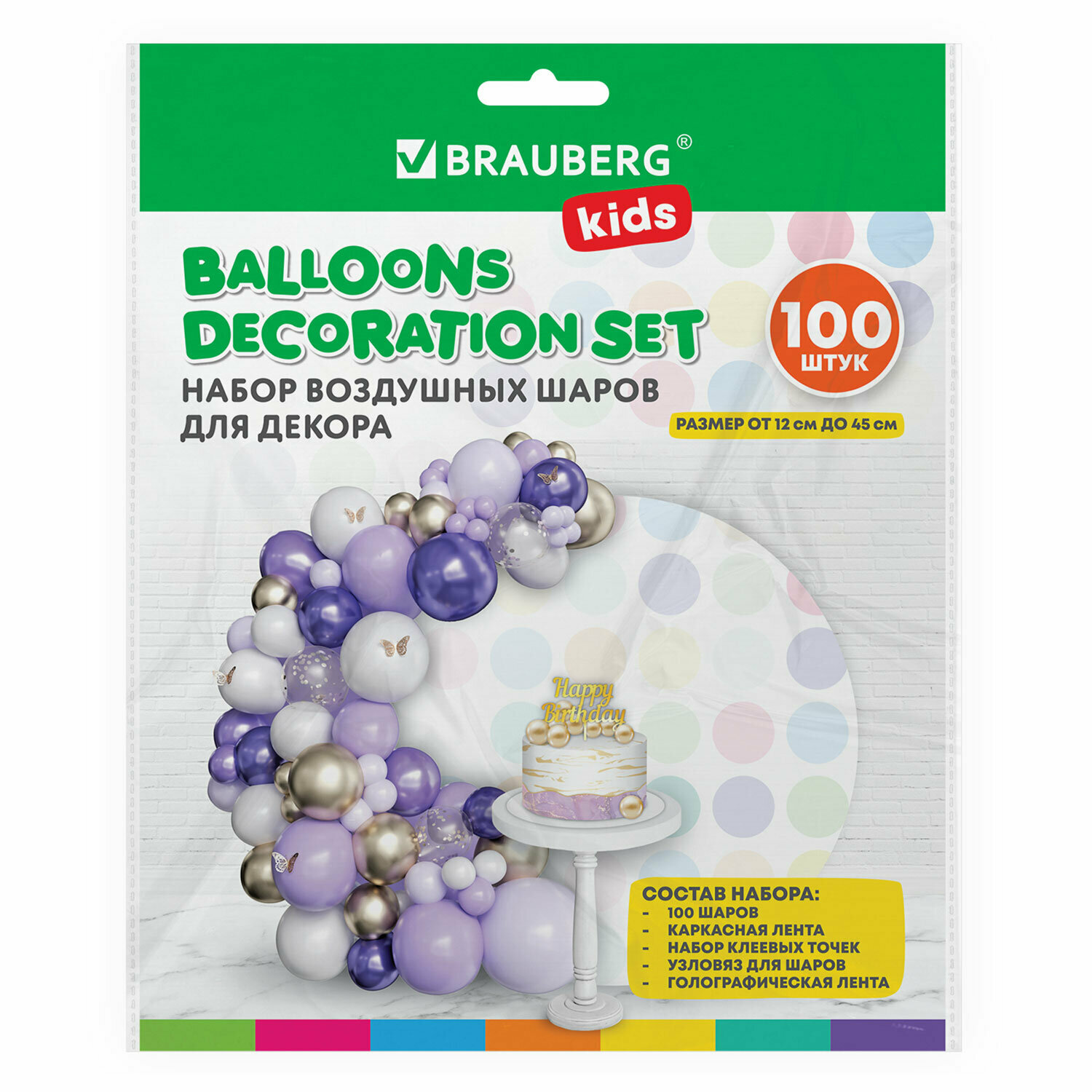 Купить Набор воздушных шаров, композиция из объемных шаров Для Декора Мечта, 100 шаров, сиреневый/белый/золото, Brauberg Kids, 591897