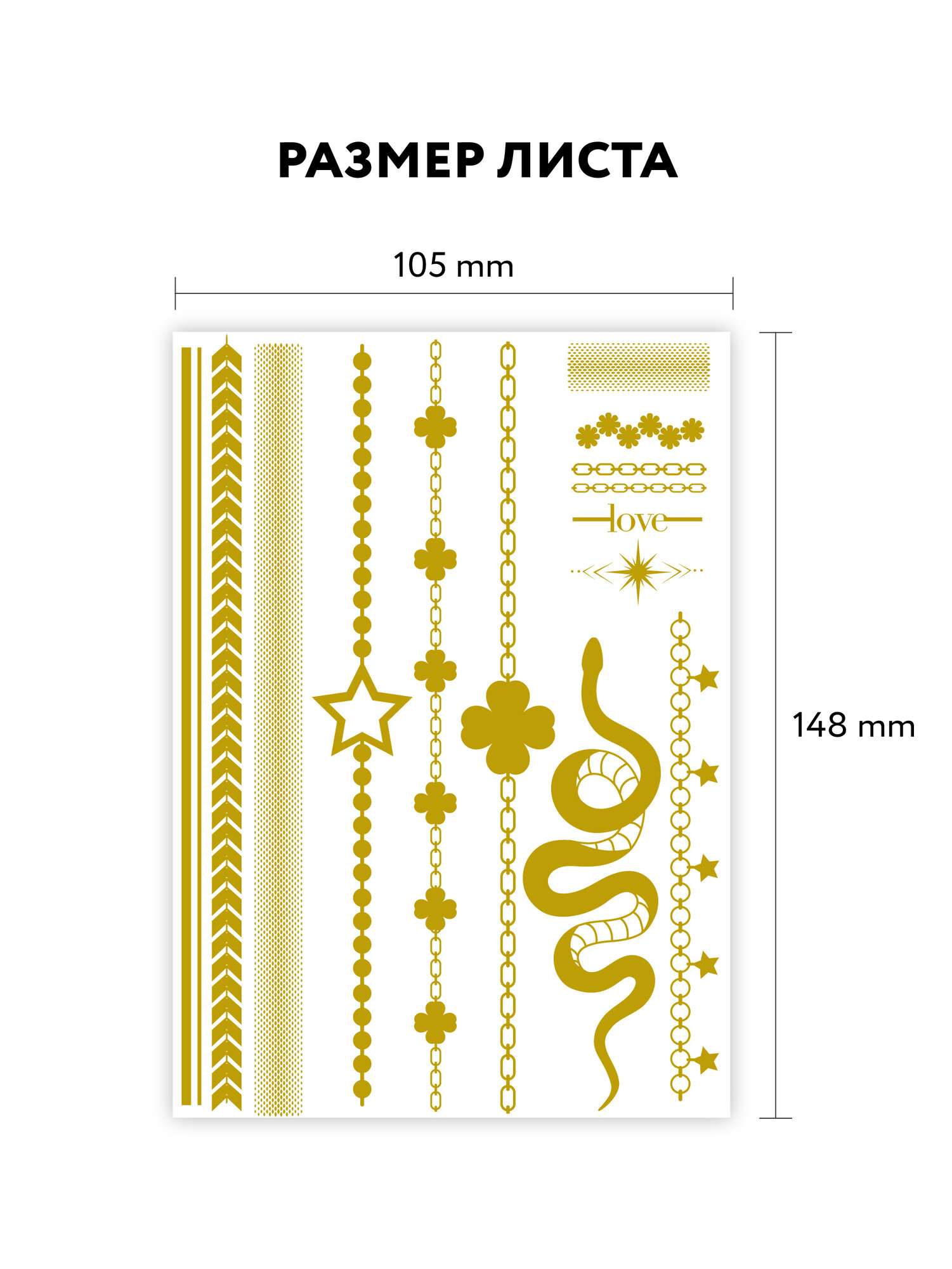 MIAMITATS Тату временные для взрослых Serpent (middle) - змеи, золотые тату браслеты