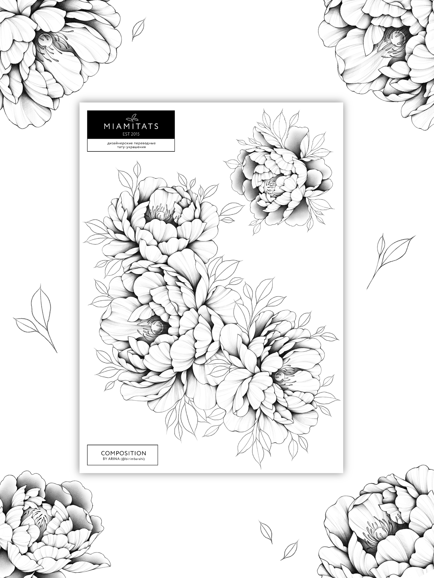 MIAMITATS Переводные тату большие Composition ( пионы ) интересное: