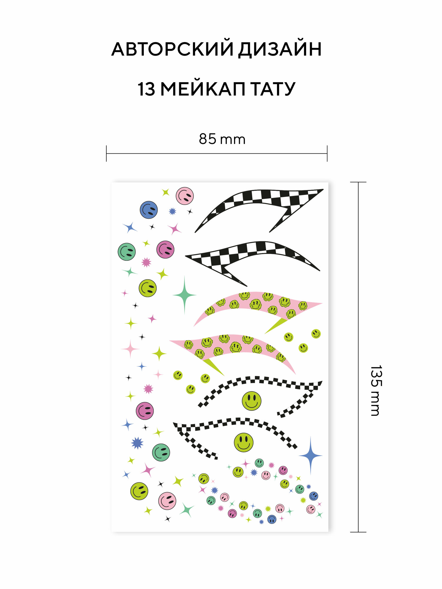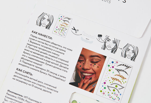 | Состав набора | Переводные тату стрелки и веснушки для макияжа глаз, лица |