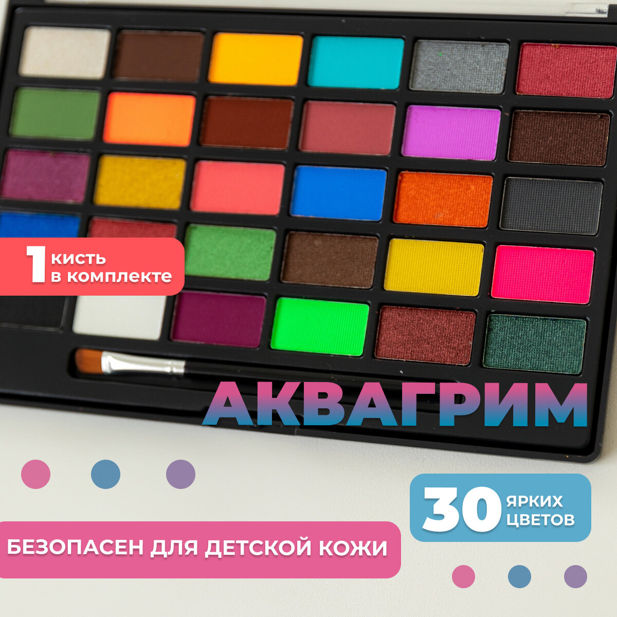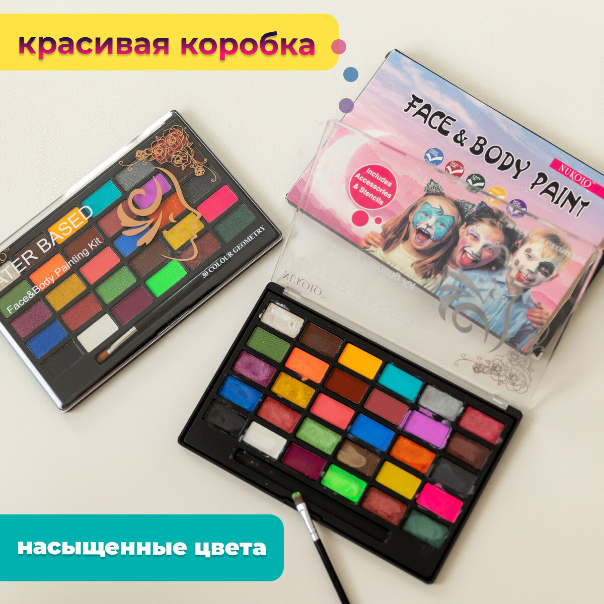 Акварим для лица 30 цветов/грим для лица профессиональный/аквагрим для детей интересное: