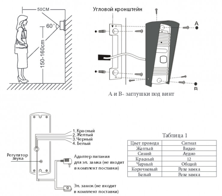 | Дополнительная информация | встроенное реле управления замком; подсветка кнопки вызова; козырек |