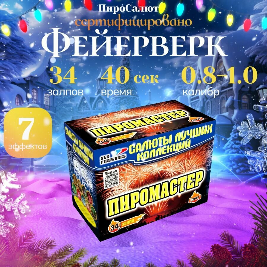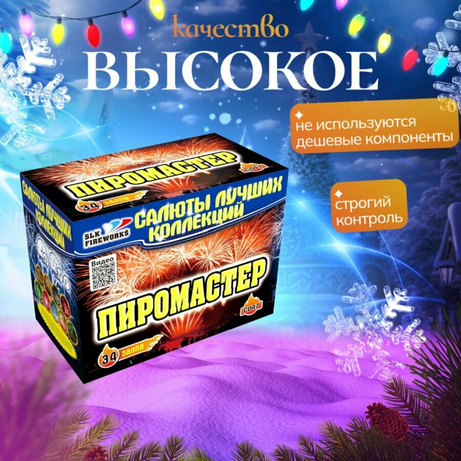 СохранитьСалюты и фейерверки / "Пиромастер" батарея калибра 0.8-1" х 34 залпов интересное: